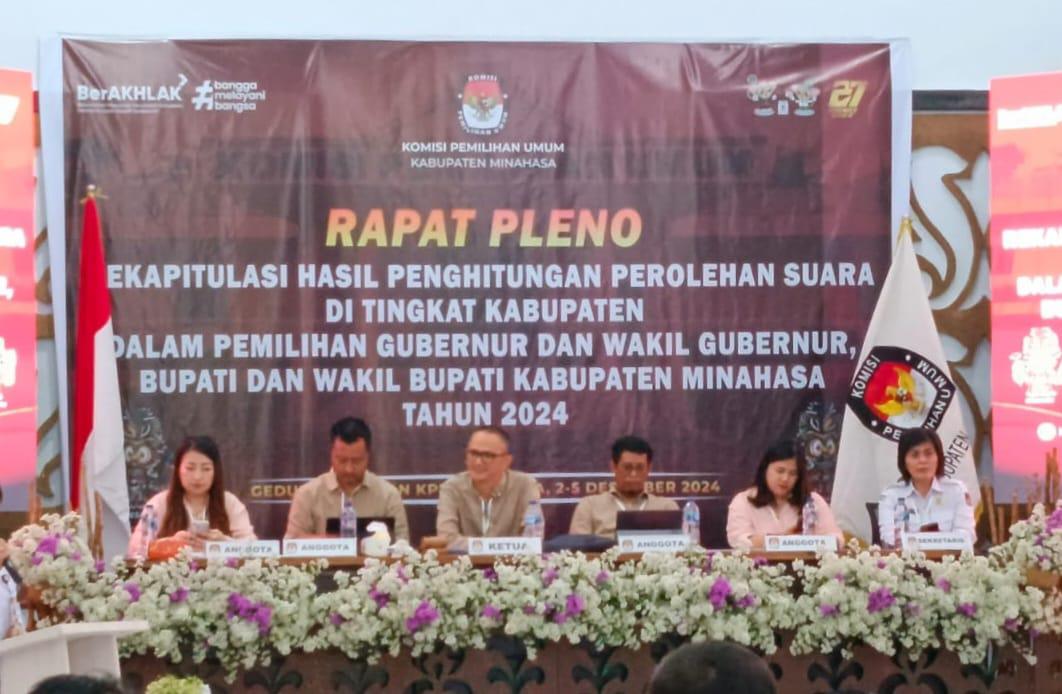 NUSANTARATERKINI.CO.ID,Minahasa — Komisi Pemilihan Umum (KPU) Kabupaten Minahasa menggelar rapat pleno rekapitulasi hasil penghitungan perolehan suara untuk pemilihan gubernur dan wakil gubernur, serta bupati dan wakil bupati Kabupaten Minahasa tahun 2024, di gedung Mahesa, 2-4 Desember 2024.
