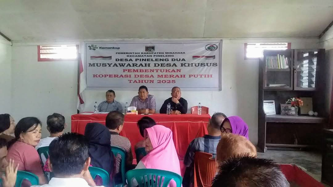 Minahasa – Melalui Musyawarah Desa Khusus (MUSDESUS) pembentukan Koperasi Desa Merah Putih, Sesuai Intruksi Presiden No 9 Tahun 2025, di Desa Pineleng Dua Kec. Pineleng resmi terbentuk Kamis, 15 Mei 2025.