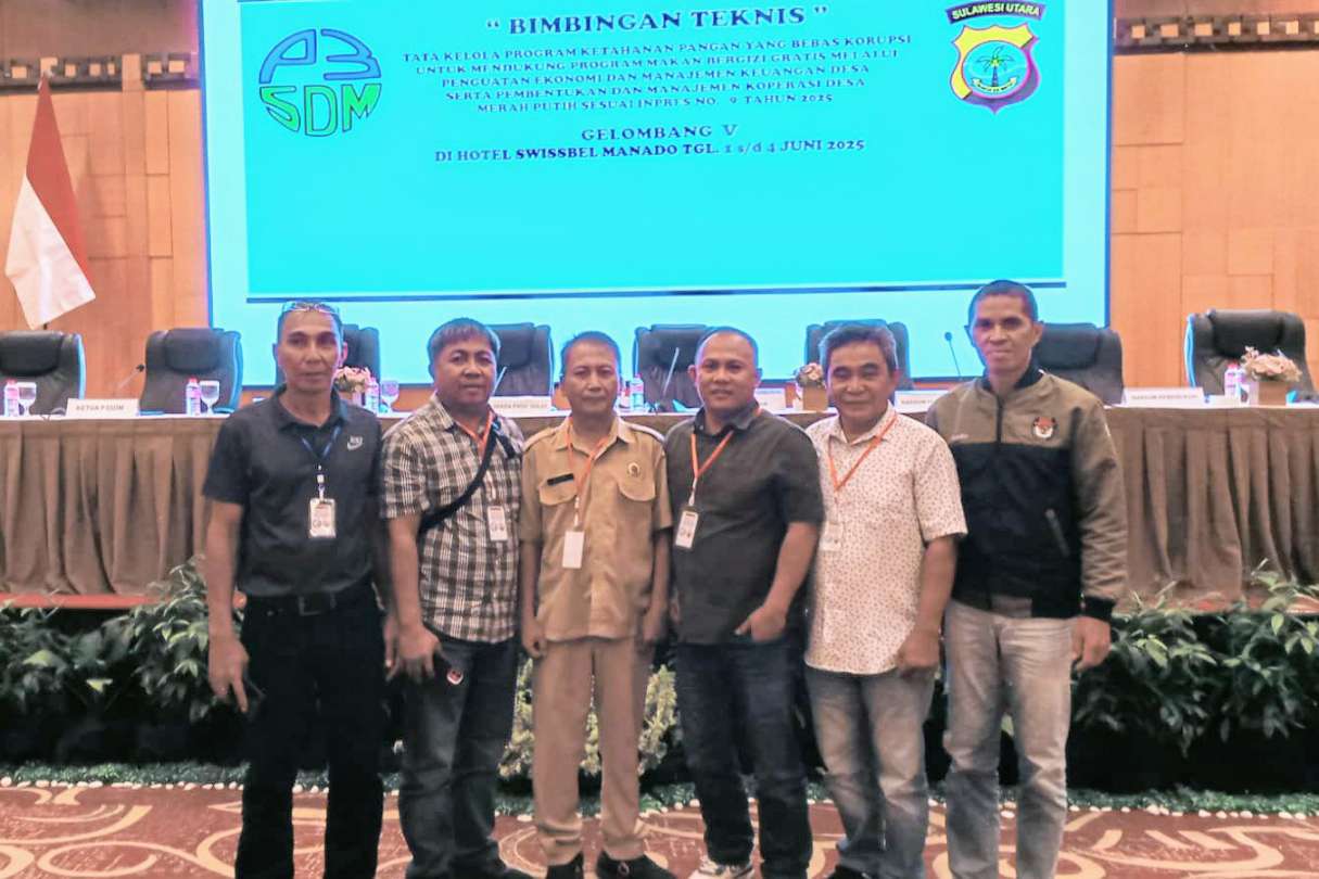 Minahasa – Pemerintah Desa (Pemdes) Kapataran Kecamatan Lembean Timur Kabupaten Minahasa mengikuti kegiatan Bimbingan Teknis (Bimtek) Tata kelola program ketahanan pangan yang bebas korupsi untuk mendukung program makanan bergizi gratis melalui penguatan ekonomi dan manajemen keuangan desa serta pembentukan dan manajemen Koperasi Desa Merah Putih sesuai Inpres nomor 9 tahun 2025, di Hotel Swiss Bell Manado, 1 – 4 Juni 2025.